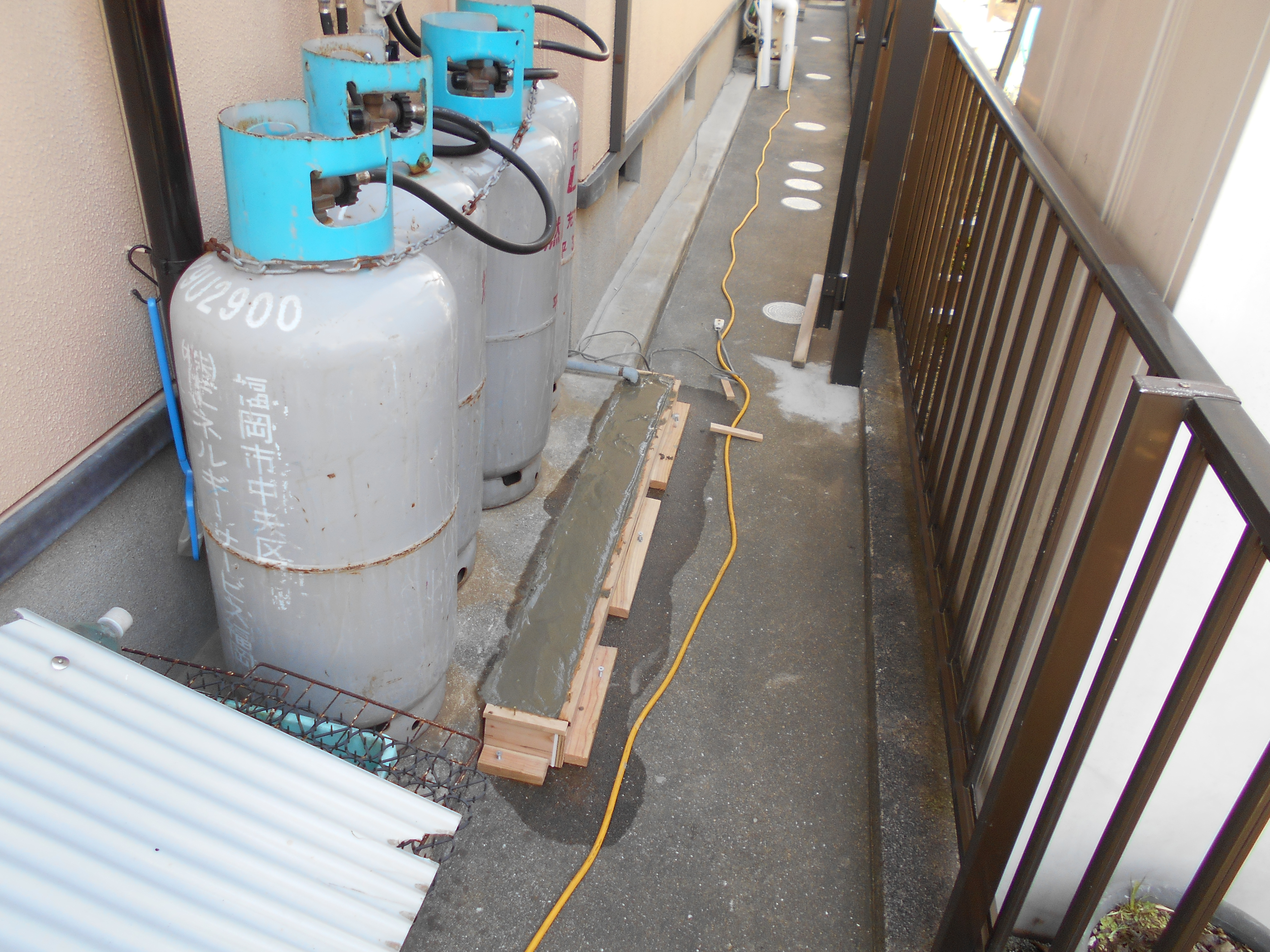 今回の工事は、オール電化とキッチンの入れ替え作業です。エコキュート取り付けるのに乗せる場所が狭いためコンクリートを打っています。