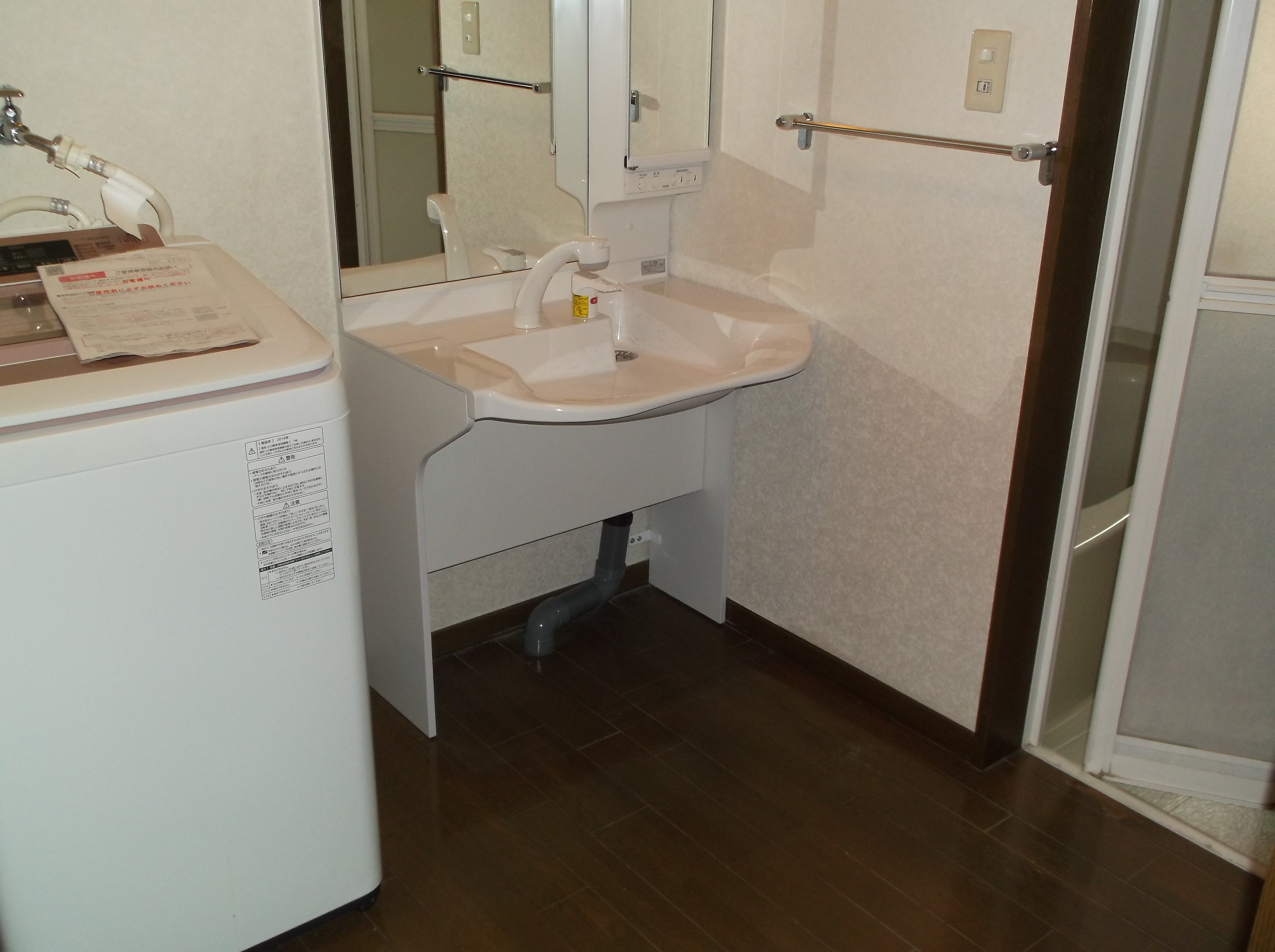 今日の作業は、車いすでも使いやすい洗面台の取り付け作業です。ご主人がけがをされて車いすで生活されています。何事も自分でできるように洗面台を取り換えました。前の洗面台だと足が洗面台に当たり使うことができませんでした。今回の工事で車いす部分が洗面台の中に入り自分で洗顔できるようになりました。明日の工事になりますが、トイレのドアの幅が狭く車いすでは入ることができません、明日はドアの取り替えの予定です。DSCF0028DSCF0030DSCF0038