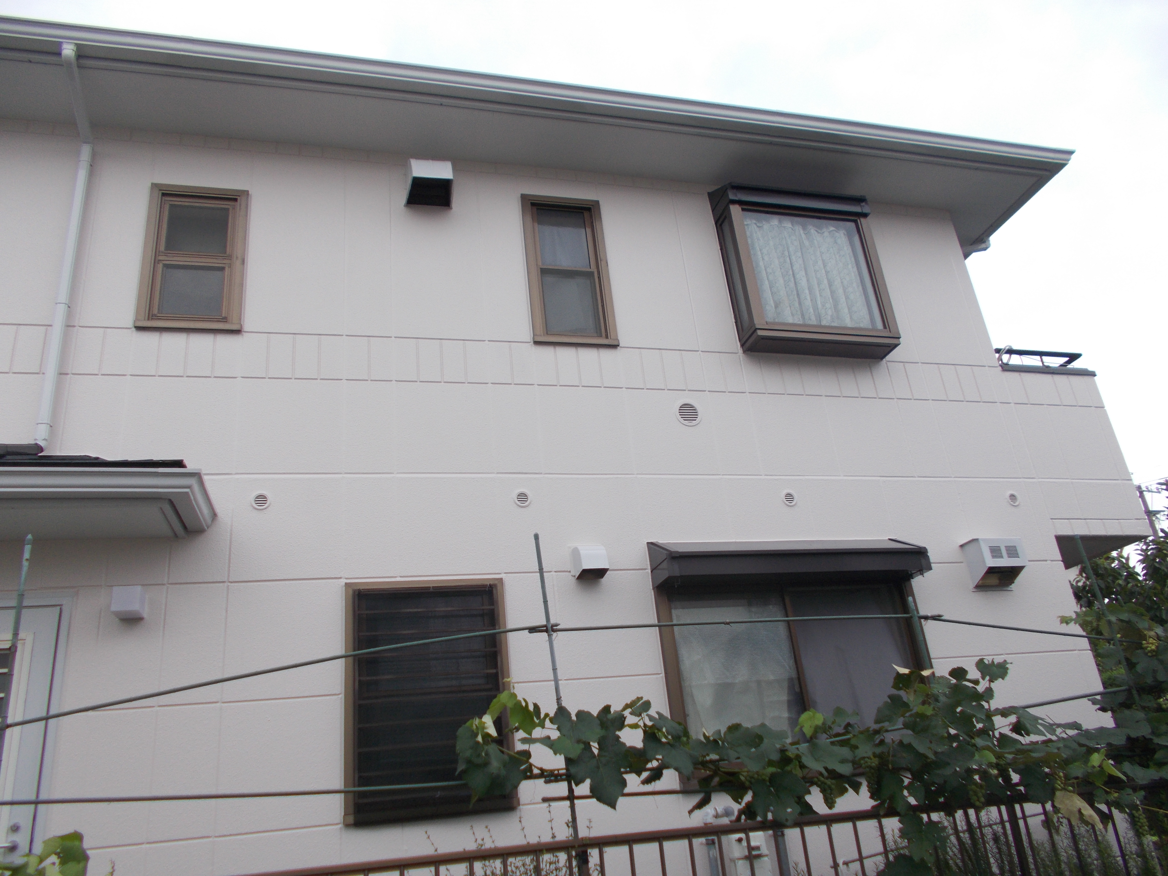 今回の工事は旭化成の住宅で前回の塗装から10年経っていました。外壁はまだきれいでしたが、屋根には苔が生えていて塗装も劣化していました。外壁には無期塗料を塗り屋根には遮熱塗料のフッ素を塗りました。ベランダの床はきれいに洗浄してトップコートの遮熱塗料を塗っています。きれいになったと喜んで頂きました。後日写真を整理してお届けしたいと思っています。